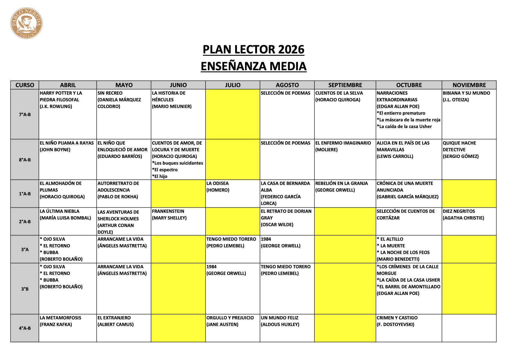 Plan Lector Media 2026 Dirección 7 Descargar Calendario de evaluaciones enseñanza media primer semestre 6 Abr, 2026 Dirección útiles de uso general enseñanza media 2026 6 Abr, 2026 Dirección